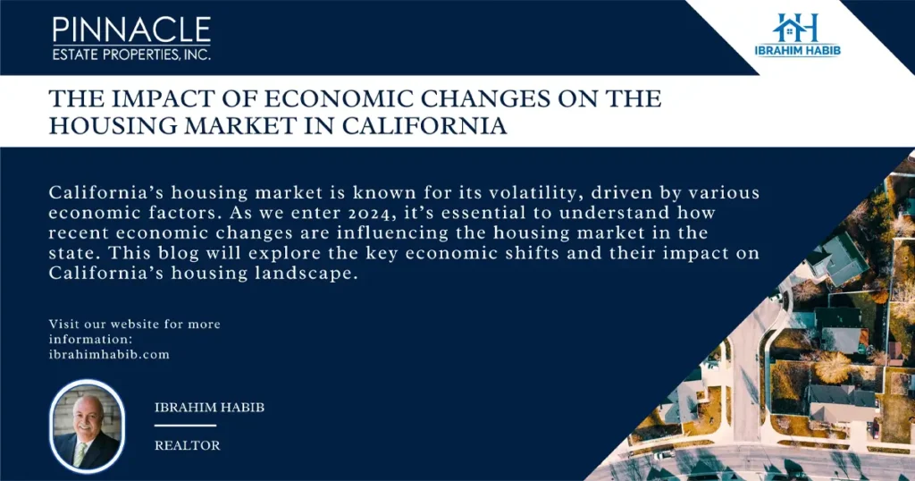 California’s housing market is known for its volatility, driven by various economic factors. As we enter 2024, it’s essential to understand how recent economic changes are influencing the housing market in the state. This blog will explore the key economic shifts and their impact on California’s housing landscape. Rising Interest Rates One of the most significant economic changes affecting the housing market is the rise in interest rates. The Federal Reserve has increased rates to combat inflation, and this has several implications for the housing market: 1. Increased Mortgage Costs: 2. Shift in Buyer Demographics: Inflation and Construction Costs Inflation has a multifaceted impact on the housing market, particularly through increased construction costs: 1. Rising Material Prices: 2. Labor Shortages: Economic Uncertainty and Market Sentiment Economic uncertainty, driven by global events and domestic policy changes, can significantly impact market sentiment: 1. Cautious Buyers and Sellers: 2. Investment Strategies: Employment Trends and Remote Work The shift towards remote work, accelerated by the COVID-19 pandemic, continues to influence the housing market: 1. Demand for Larger Homes: 2. Relocation Patterns: Housing Supply Constraints California has long faced challenges with housing supply, and recent economic changes have exacerbated these issues: 1. Regulatory Hurdles: 2. Affordable Housing Shortage: Government Policies and Interventions Government policies play a critical role in shaping the housing market: 1. Incentives for Affordable Housing: 2. Tenant Protections: Conclusion The economic changes in 2024 are having a profound impact on California’s housing market. Rising interest rates, inflation, economic uncertainty, remote work trends, and government policies are all influencing market dynamics. For potential buyers, sellers, and investors, staying informed about these economic factors is crucial for making sound real estate decisions. As the market continues to evolve, keeping a close eye on these trends will help navigate the complexities of California’s housing landscape.