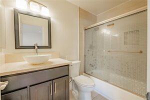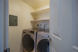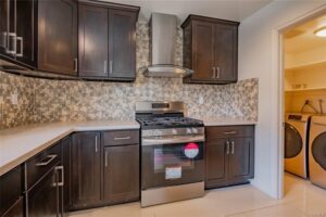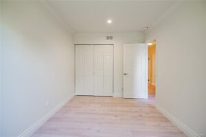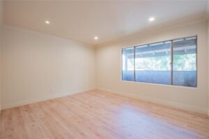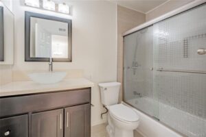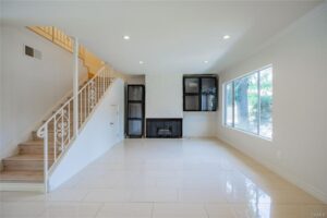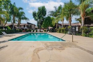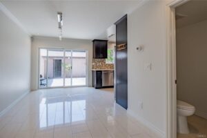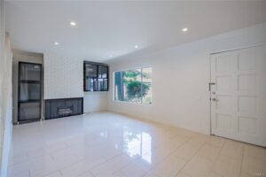 This recently remodeled condo in Reseda features 3 bedrooms, 2.5 bathrooms, and 1,257 sq. ft. of stylish living space. Located in a pet-friendly community with two pools, this home combines modern comfort with practical amenities. As you enter, you'll be greeted by a bright and spacious family room that boasts a cozy fireplace, recessed lighting, and sleek white laminate flooring. The open layout continues into the dining area, where glass doors lead to the backyard, enhancing the flow of natural light. The contemporary kitchen, seamlessly connected to the dining space, showcases elegant black cabinets, white laminate countertops, a chic tile backsplash, and stainless-steel appliances. A convenient laundry room with ample storage is discreetly located within the kitchen area. The main floor also includes a half bathroom, perfect for guests. The second level has been freshly painted and features new vinyl flooring throughout. The primary bedroom is a generous retreat, complete with a walk-in closet featuring built-in shelving and a full bathroom with decorative glass doors. Two additional bedrooms offer comfortable accommodations with plenty of closet space. Outside, the backyard is paved for easy maintenance, and the condo includes a two-car garage for your convenience.