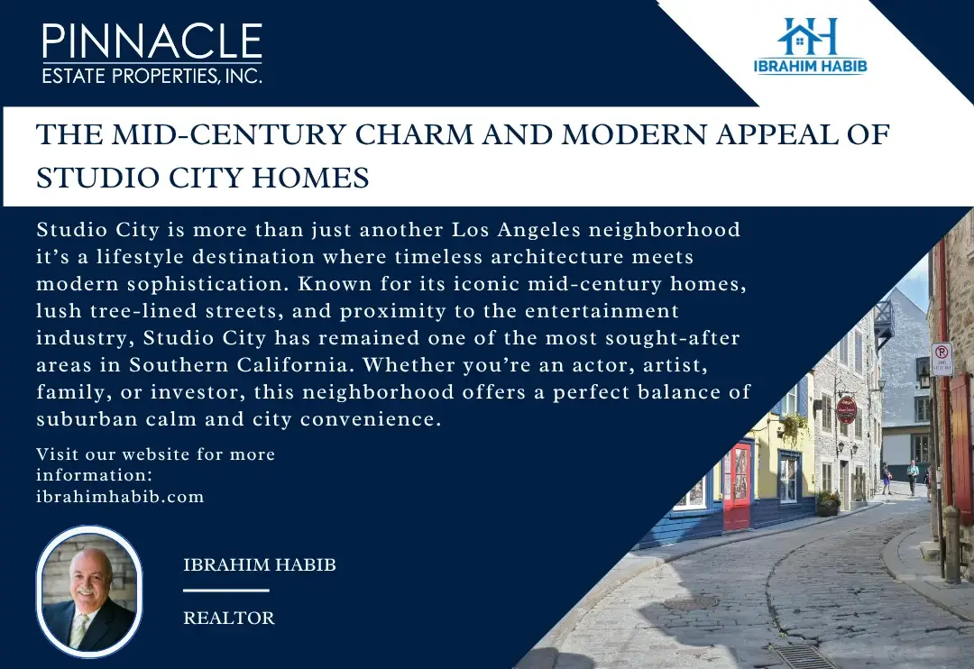 Studio City is more than just another Los Angeles neighborhood it’s a lifestyle destination where timeless architecture meets modern sophistication. Known for its iconic mid-century homes, lush tree-lined streets, and proximity to the entertainment industry, Studio City has remained one of the most sought-after areas in Southern California. Whether you’re an actor, artist, family, or investor, this neighborhood offers a perfect balance of suburban calm and city convenience.